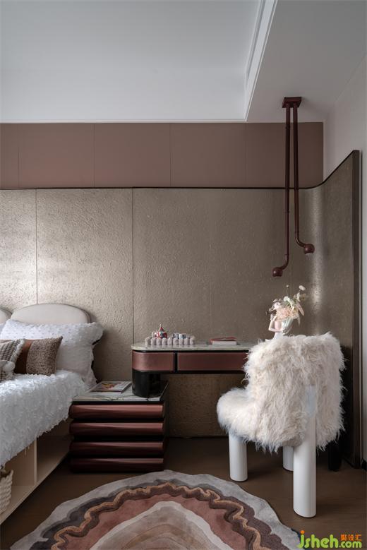 长辈房以稳重舒适为重点,一抹暖色点缀空间的成熟与平和,样板房设计在拂去装饰的表象之后,生活的痕迹与温度仍然有迹可循。