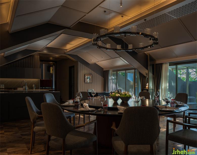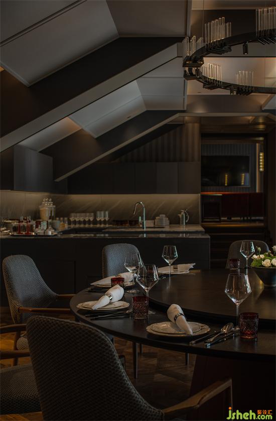 餐厅设计以重灰色为主基调的包厢内含有茶区和沙发区,在较小的空间仍将功能发挥到最大,平添房间的“主人气”,以及一种“大院包小院”的深远。