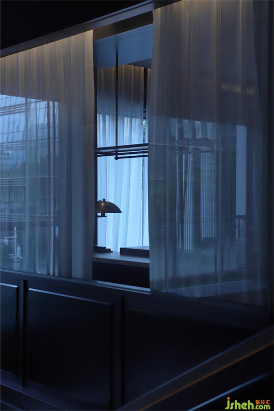 右侧透明摆台上的“明月”灯饰,两者共同构城这幅“明月出天山,苍茫云海间”的空间艺术。