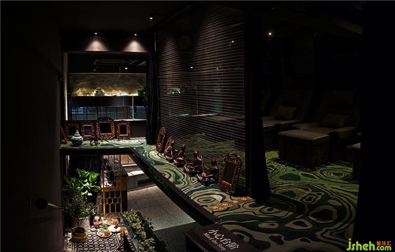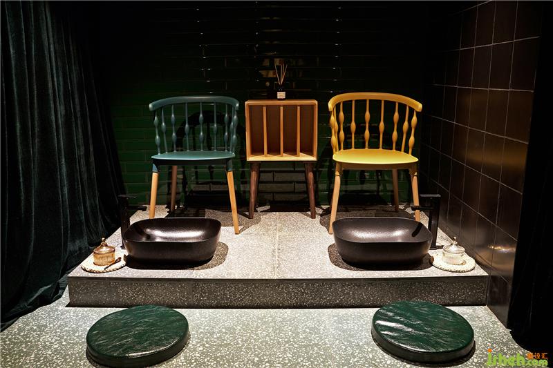 二楼,设计师在平衡空间关系时利用钢帘网和活动帘作隔断,分隔出随意陈列位,定制水波纹图案手工地毯上展示泰国本土淘回的手工艺品,提升空间调性之余降低楼梯的局促感。足部按摩时消音的包裹式设计让顾客快速进入深度舒缓,达到休息的目的。