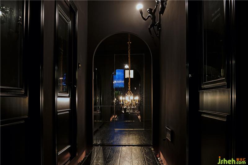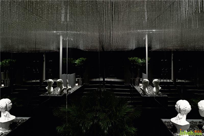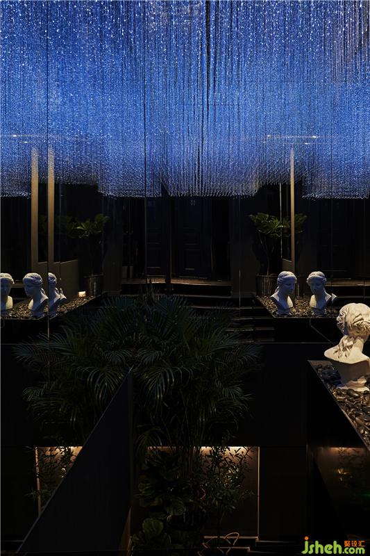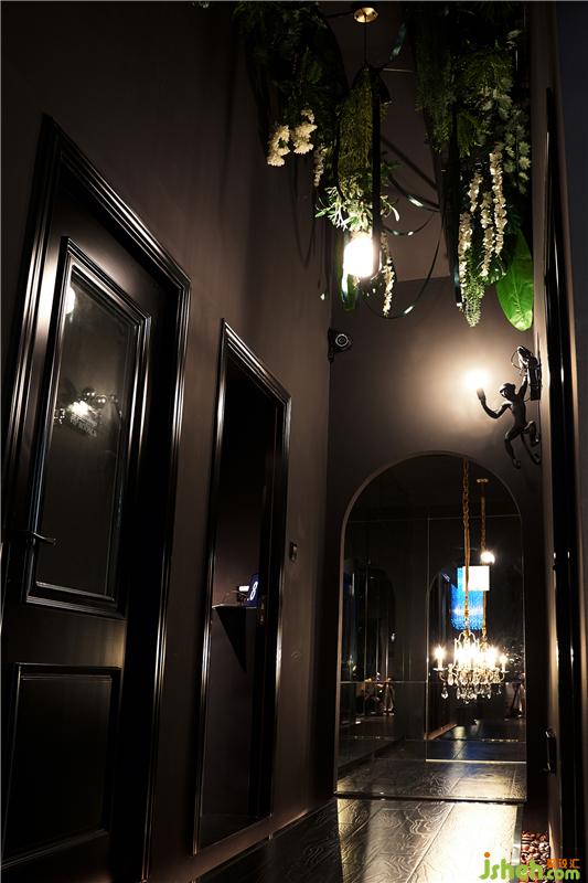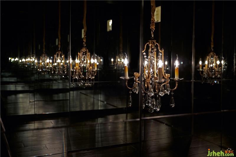 三楼大约117平方米,在有限空间内规划设计出了3个Massage空间和2个Spa主题间。从二楼楼梯转弯上三楼,在原有过道基础上故意加大楼梯空间,营造光纤艺术装置,抬头可见整个天花和墙面镜子的延伸,慢速呼吸的光丝灯在镜子错觉魔术下虚化视神经,从而达到接近放空状态,如置身梦境般。