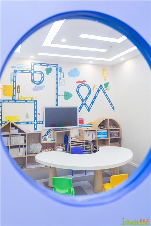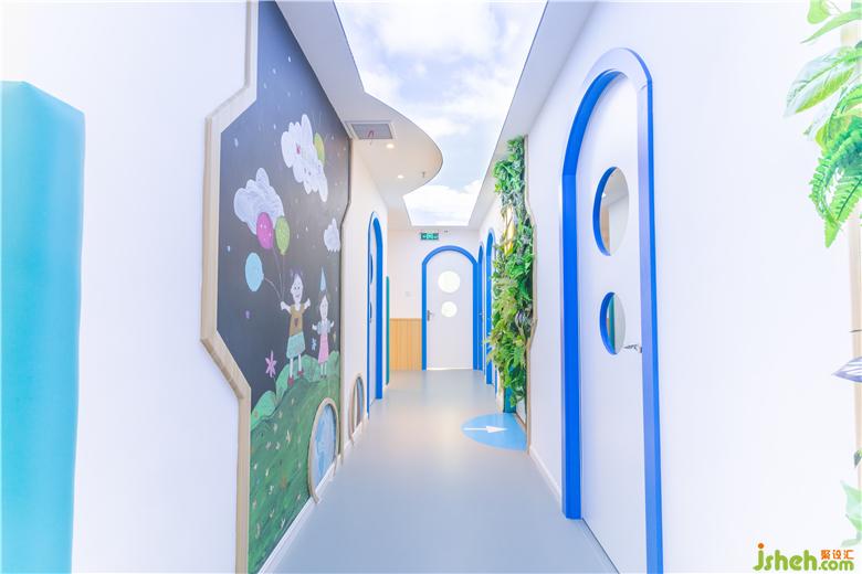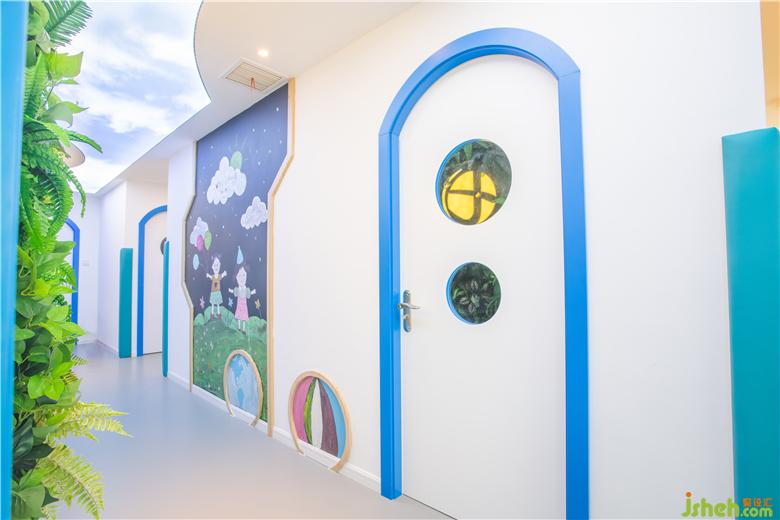 过道墙面的“墙洞”分别以:自然之门,智力之门,友爱之门命名,小朋友可以从不同的门爬进去上课,增强学习趣味性,营造轻松快乐的学习氛围。