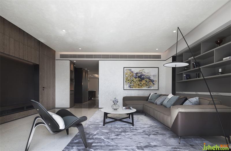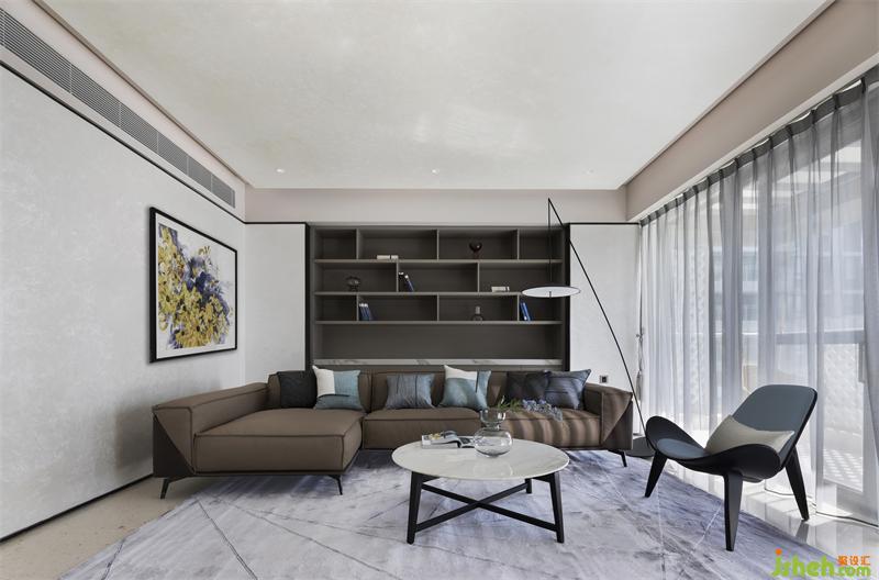 整个客厅墙面留白,延伸东方美学与时尚的融合,稳重的褐色贯穿其中,形成高反差的色调对比,在追求当代生活方式的同时不忘将东方美学融入其中,回归生活本质。
