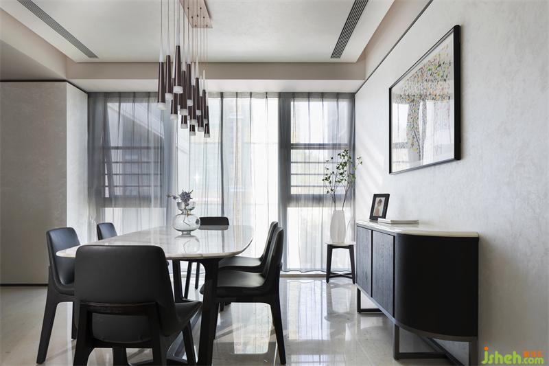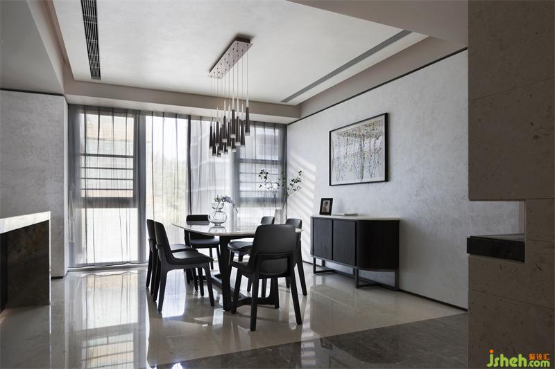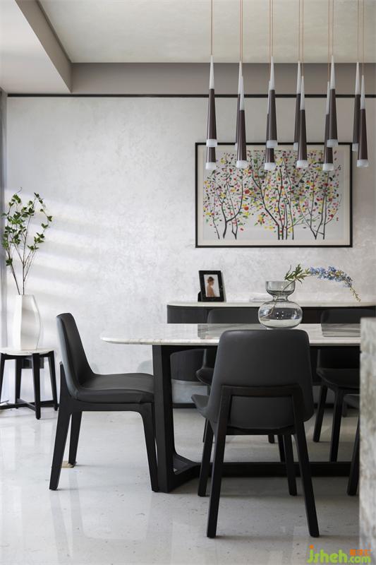 进入玄关,我们采用了东方水墨色留白的反差视觉体验,画中的天鹅在水中高雅的情调,柳条轻盈的垂落下来,与台面的花艺虚实结合融洽和谐,材质特性让室内阳光洒入,温暖流淌。