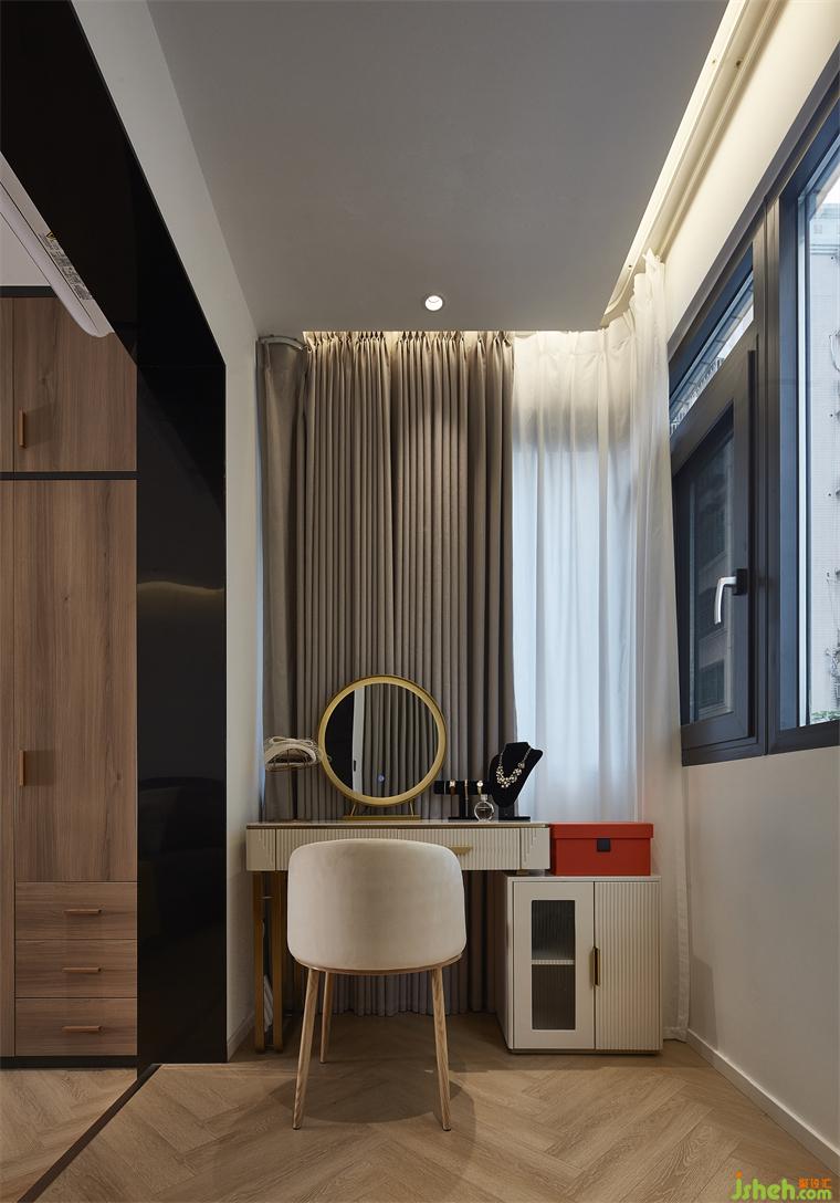 追求至简风格,舍弃复杂的家具摆设,独留床、桌、柜、台一体。