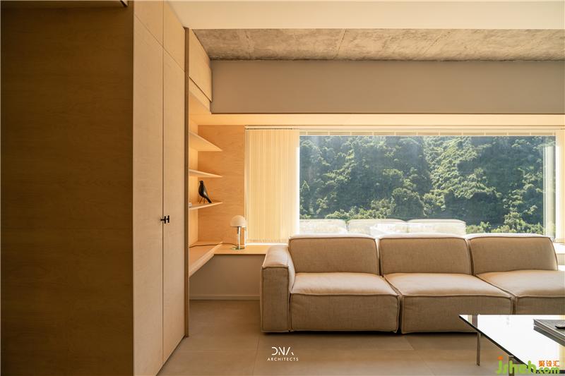 当打开垂帘,翠绿的山野映入眼前,午后的阳光通过窗台的桦木材质反射,将整个空间“染”上昏黄杭州室内设计师,显得恣意、悠然。以山为画,以江河为毯,抛弃多余的装饰性设计,透过大面的窗户,在空间里回转时能体会到不同样貌的自然景色。