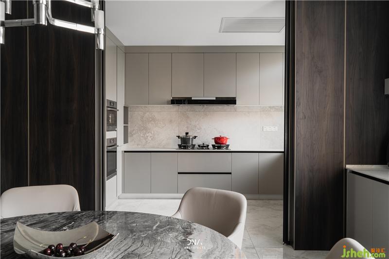 宽敞的餐厨空间设有中、西厨分区,以满足不同场景下的使用需求。