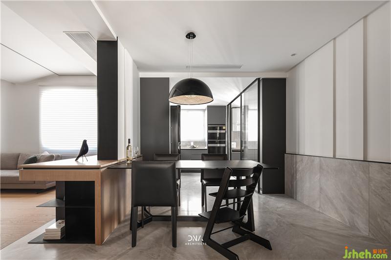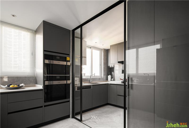 原北面阳台被改造成西厨空间,承接了餐厅和厨房之间空间过渡杭州室内设计师,原本较小的厨房空间也得到极大的扩展。