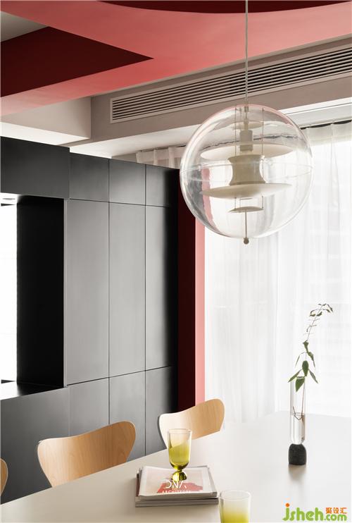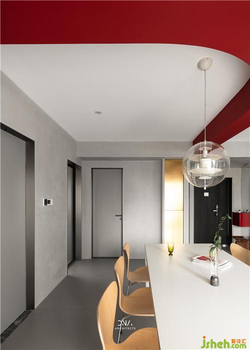 色彩与几何的设计理念已够强烈,因此设计师对于门套进行减法处理杭州室内设计师,打破常规。创造出有趣的互动视觉。