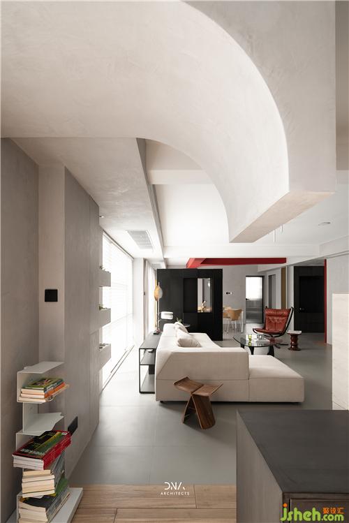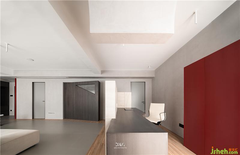 The design concept of color and geometry is strong enough, so the designer subtracted the door cover to break the routine. Create interesting interactive visions.