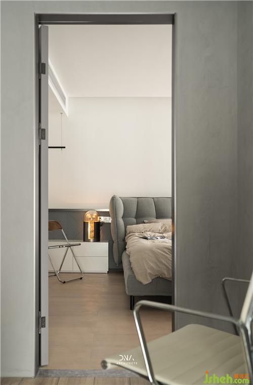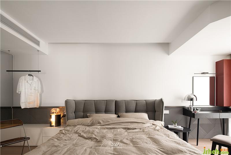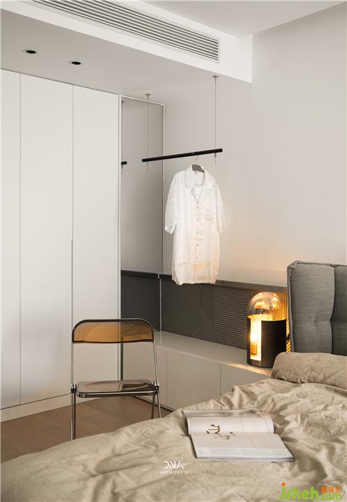 The bedroom continues the simple temperament without excessive decoration, presenting an elegant and restrained space. Every detail expresses the designer's requirements for aesthetic texture.