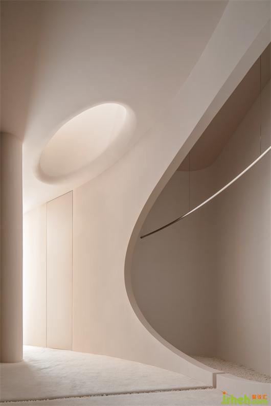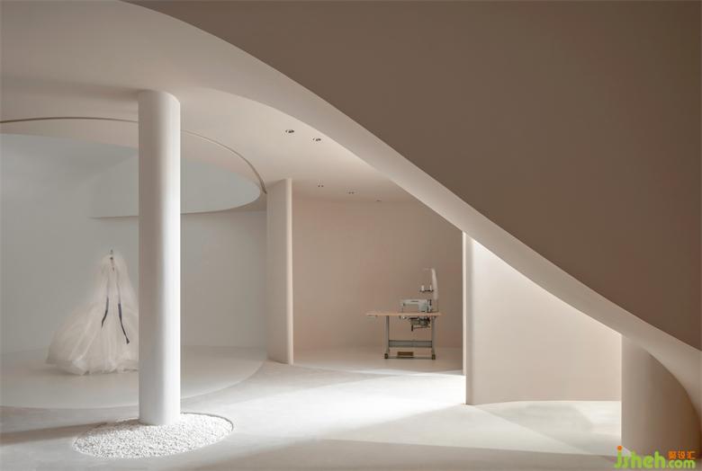 我们想把婚纱作为空间的主体去衬托,而白色作为婚纱的主色系,我们有刻意规避白色去营造空间圣洁的氛围,高定空间设计以大面积的裸色去迎合和凸显婚纱的气质。