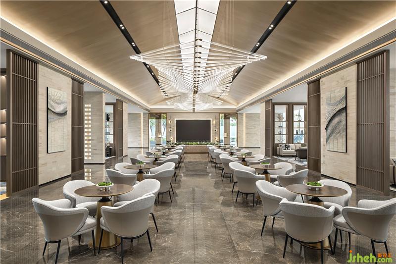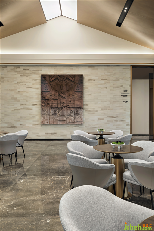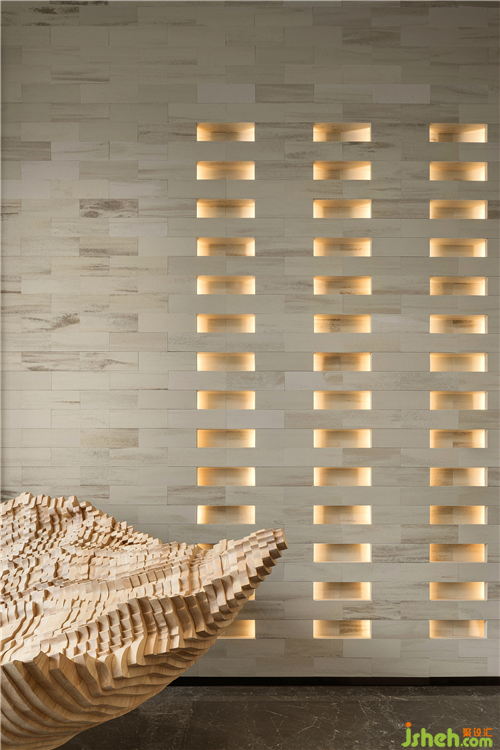 设计师将人们所熟悉的传统构件加以抽象、裂解和变形,使之融合敦煌岩彩艺术与灯光,成为象征新与旧、今与古的符号,并在室内元素中拼贴运用,成为媒介,构建起观者与时空在精神层面上的对话。