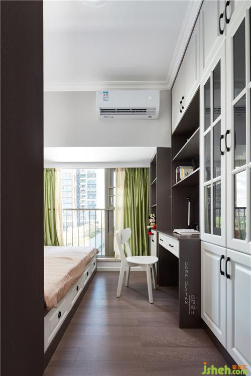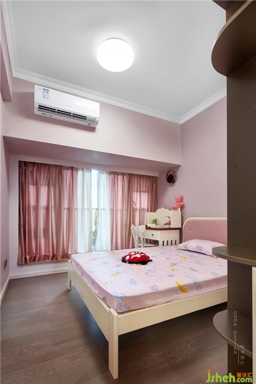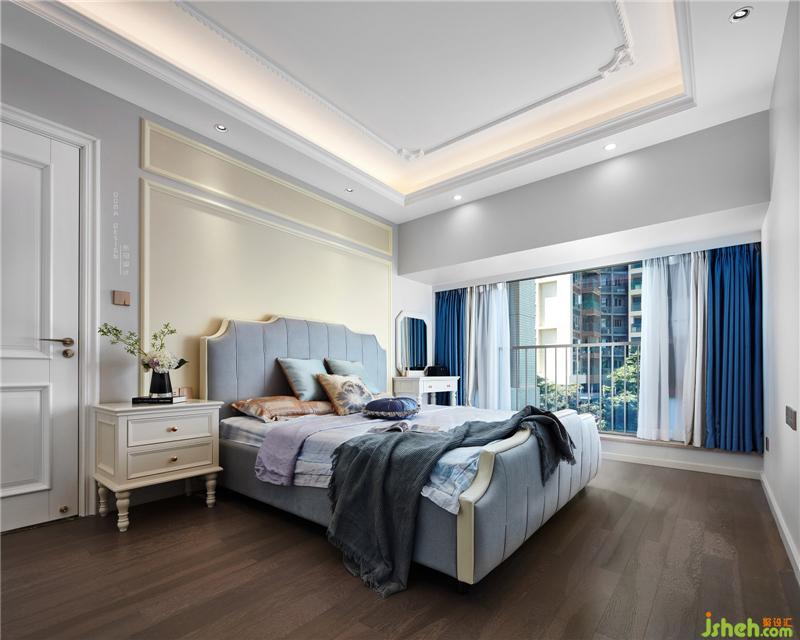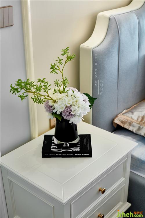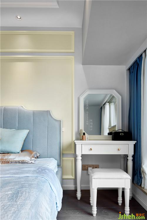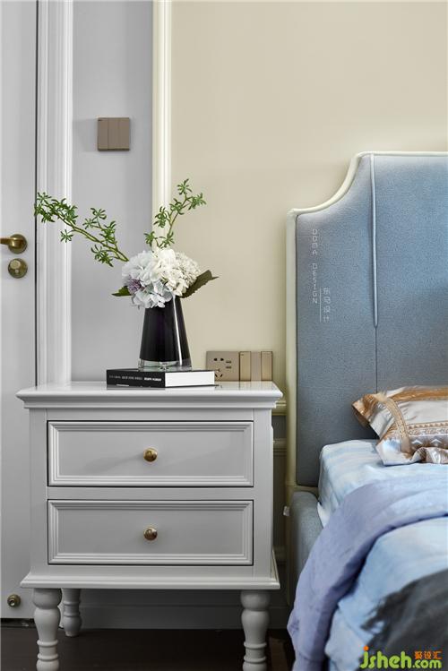 在色调上跟客厅统一协调。家私选用莫迪兰色系,硬装与软装在色温上的碰撞,二者完美地衔接。