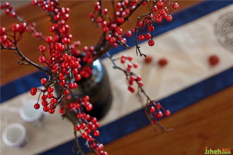 2、餐厅采用了圆桌的设计,而客厅是方形的,然而与客厅形成了“天圆地方”的东方之美。