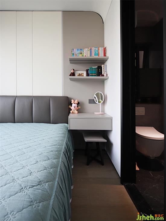 次卧空间和公卫双动线的处理,促成多功能使用睡卧洗漱、又不影响生活,装扮于一体的栖居生态。家装设计围绕着舒适性、多用性的主题,符合人居动态的动线,带领空间走向深处。