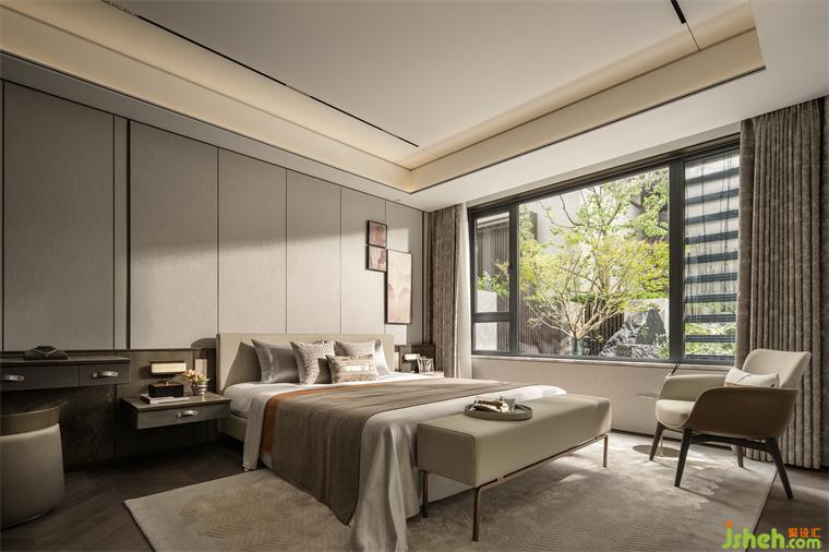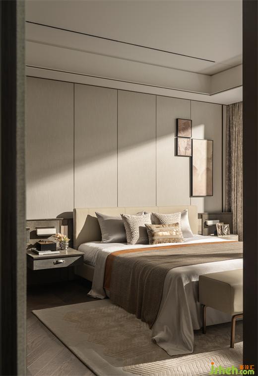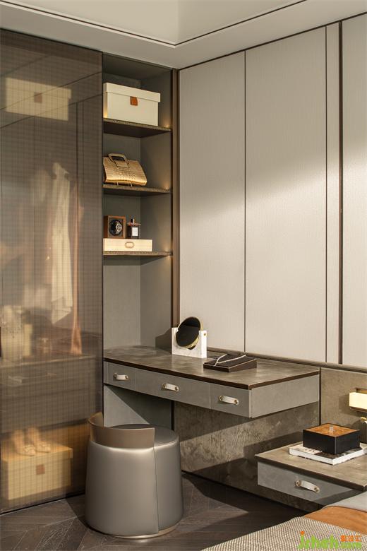 主卧衣帽间、单独卫生间以及梳妆台的设置,样板房设计满足了实际的功能需求。品质感家居产品和床头柜细节营造,为主人提供了舒适的睡眠环境。
