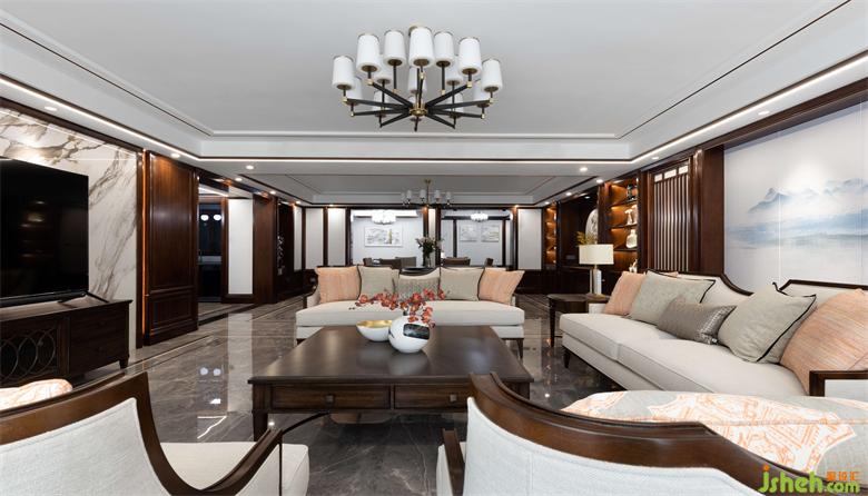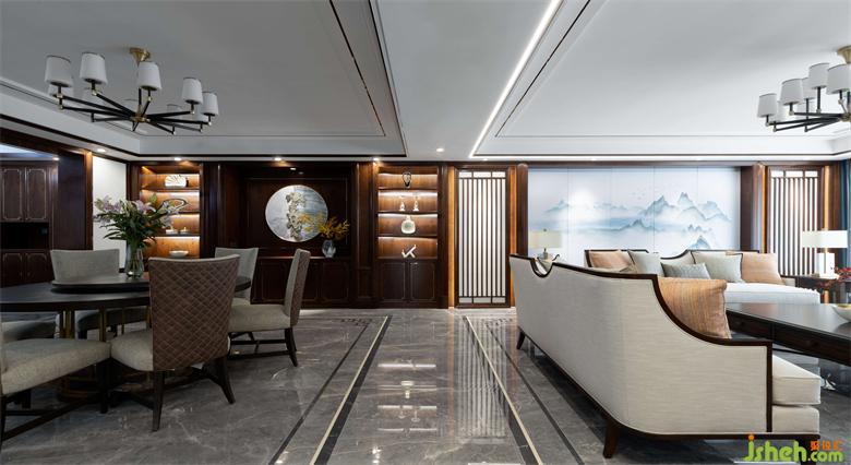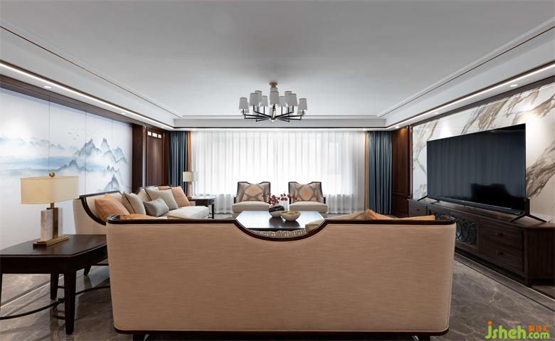 客厅是居家的中心,是承载欢聚生活记忆的空间。深色的美克美家沙发占据了主要位置,与之搭配的是方形茶几,将舒适性与实用性融为一体。客厅背景以硬朗的实木直线条,改变大面积的木饰面装饰的设计,家居设计采用大面积的高端岩板,为整体居家空间奠定了简约时尚的格调。