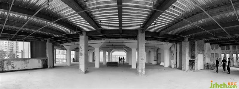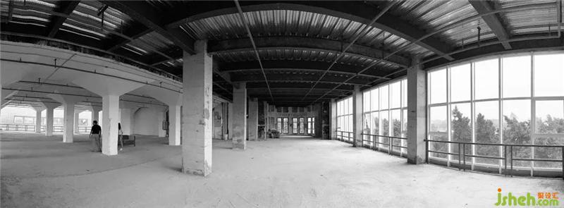 整个室内空间视野旷阔,但承重柱多,在空间布局上印象视觉效果;