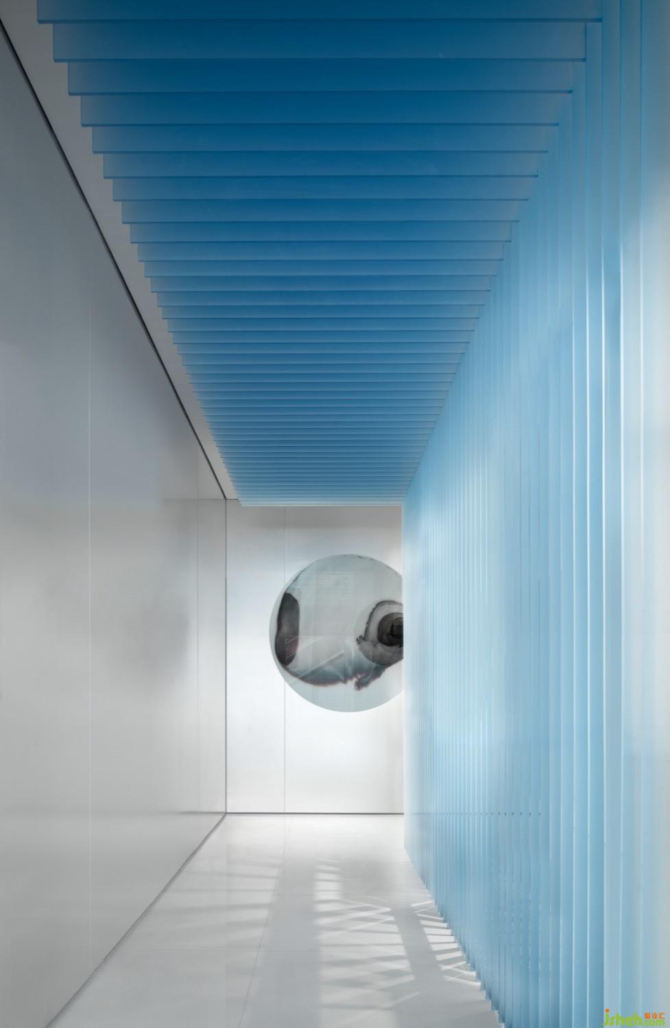 The space chooses a blue of hazy and mystery with a not clear attitude, such as a lighting in the mysterious dimension. Remove the fog to touch the light, you can see the space will come up with a layer by the sense of life exploration, you will curious about what is the background story and the purpose happen it in the space, when you walk into the lobby.