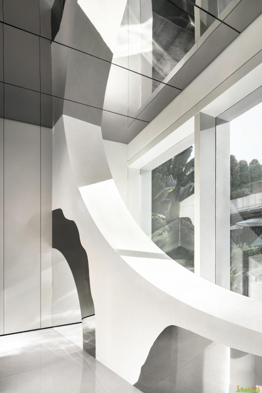 △The entrance gives the feeling is about hazy of experience to the customer, but its thorough the life by faint, the simple and pure surface and the shadow of lighting to create a new spacial relationship by the layer by layer iterative, it shows the vitality of nature and deeply to guide human to explore