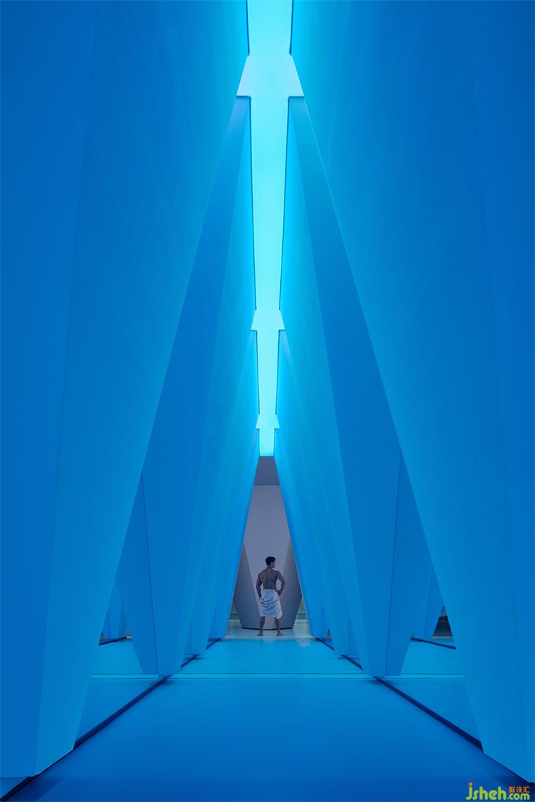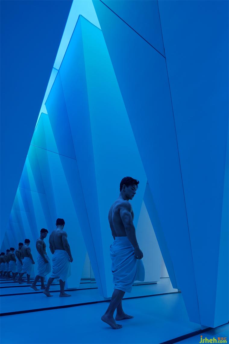 空间结构的割分带来阵列的节奏感,旗舰店设计在空间中形成具有力量感的建筑轮廓,同时光线的延伸感不断加强叠加形成最终的感受力,这是属于三角的力量。