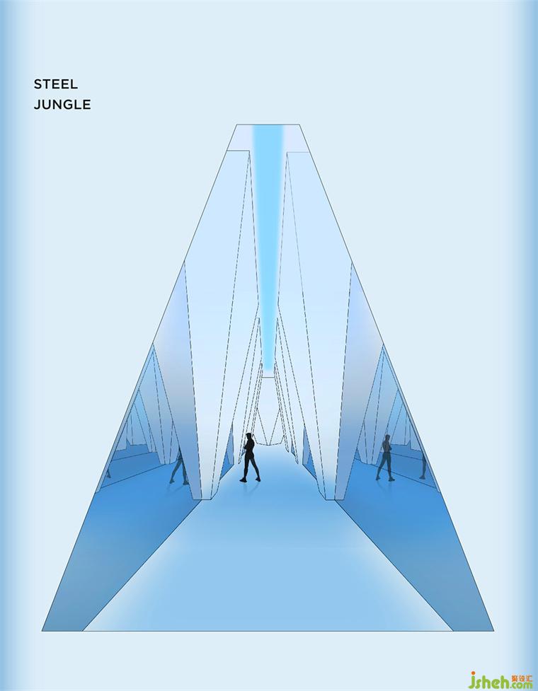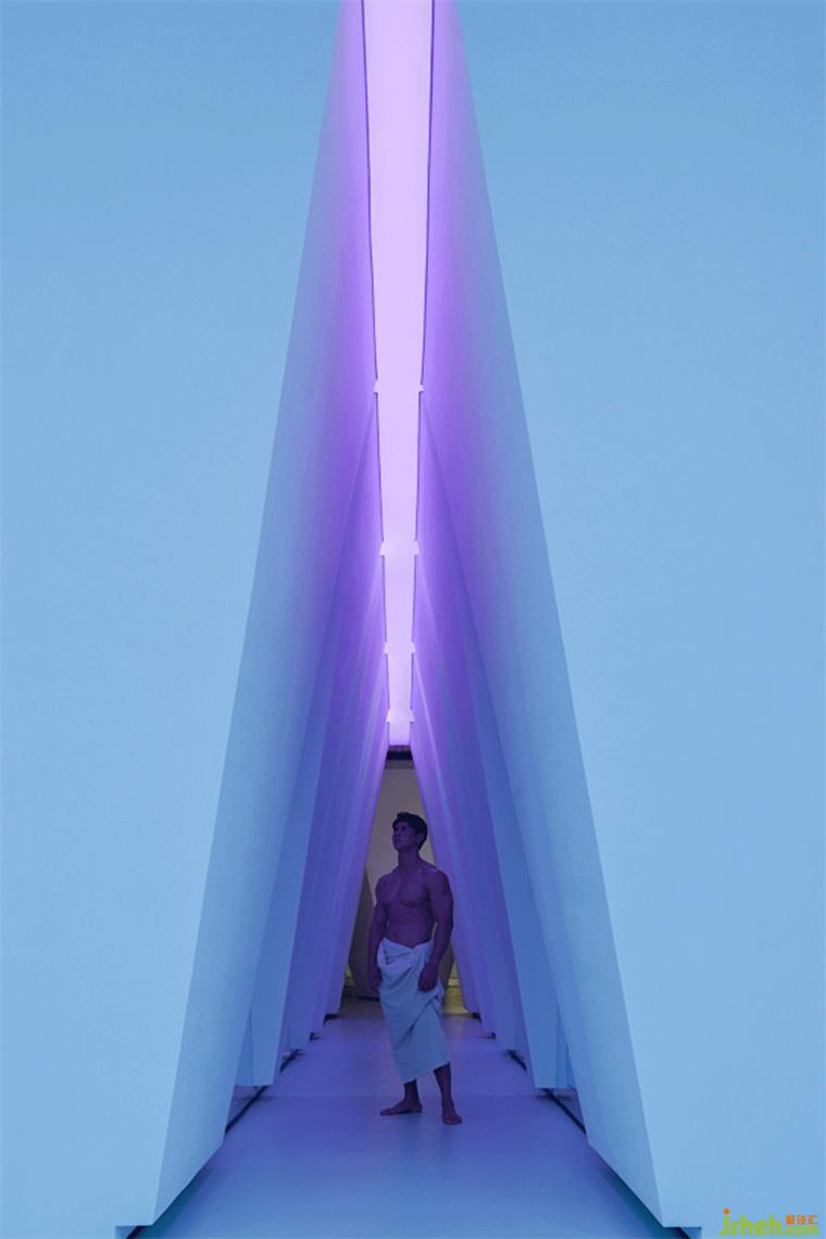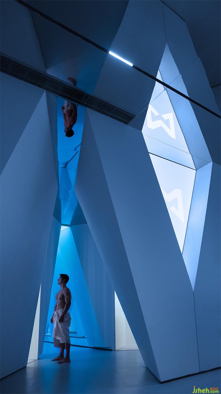 设计师利用更衣室缔结生活的真实感受,旗舰店设计在未知和已知中不断转变,每一个出口都将开启新的入口,长廊两侧设置更衣室,遵循高品质的用户体验,利用简洁的几何体块引导视线和动线的发展,给予私密的环境来平和内心的感受。
