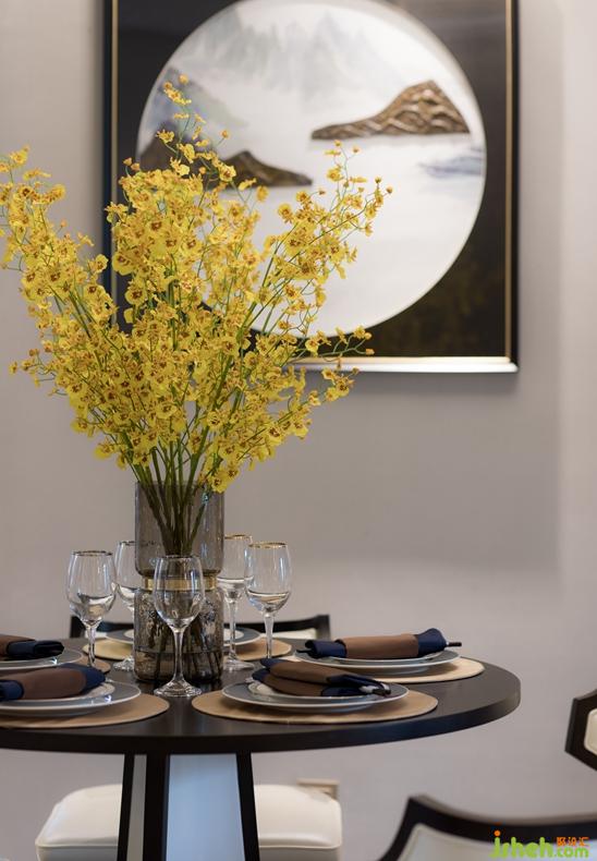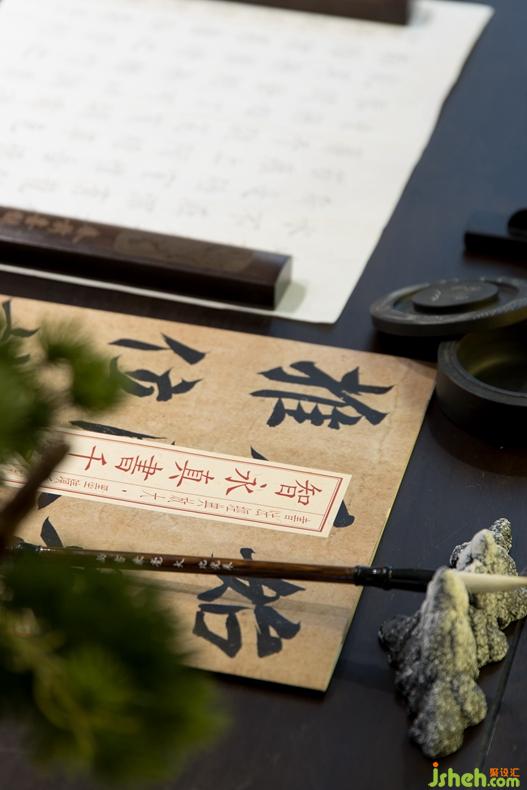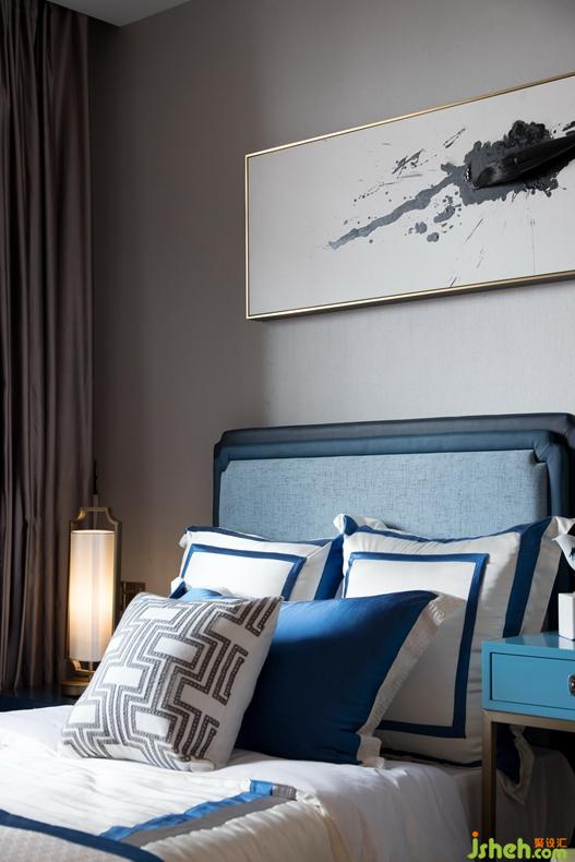 黛青色的点缀于空间随处可见,墙上朦胧的远山含蓄而委婉,而那留白之处泛着清幽的灯光,更是给予人们无尽的想象。