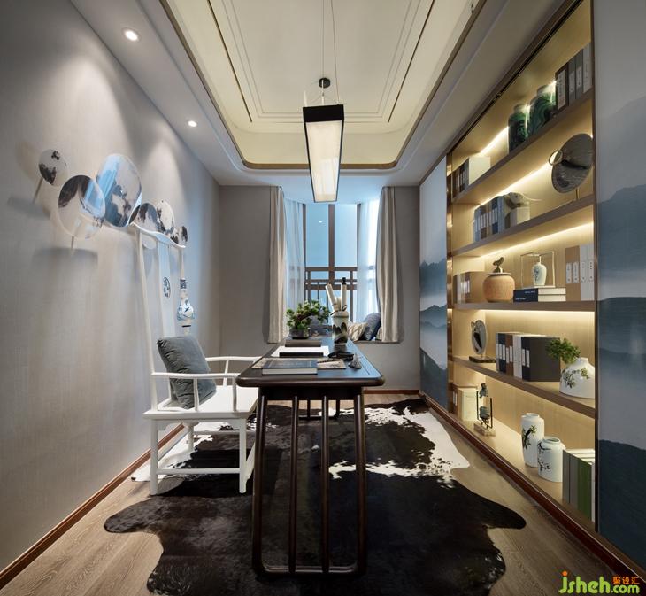 泼墨浸染的地毯铺于木地板上,黑白之间蔓延几分自由写意,书卷文物的香气弥漫在书房的每一个角落,静静品味这清闲雅致的独处时光。