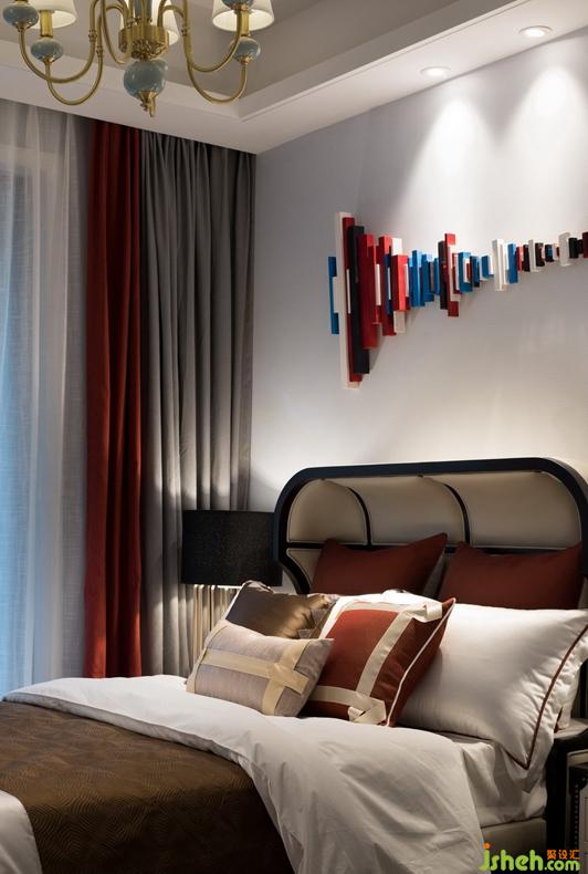 移步次卧,设计以简约舒适为原则,软装配饰赋予空间一份沉稳典雅的美感。