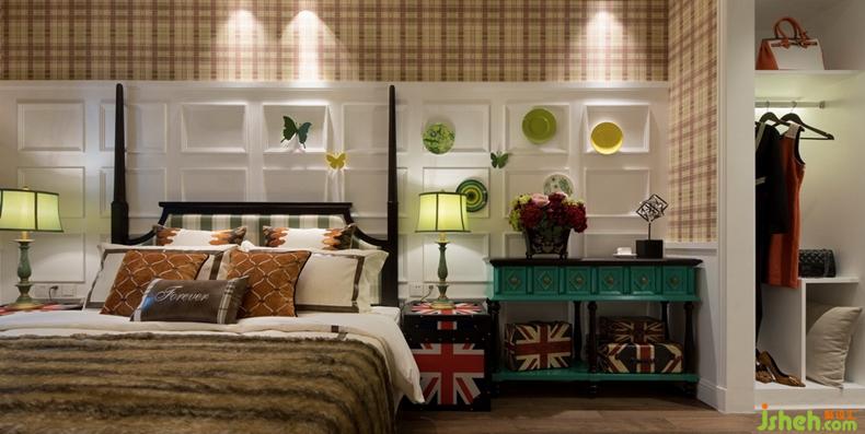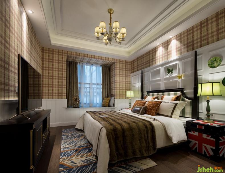 主卧简约清新的英伦风,如同令人向往的庄园生活般富有诗意和情调,搭配大面积的方格图案墙纸和简单的饰品,诉说着静谧时光里的美好。