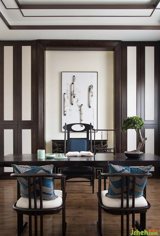 古人高雅的休闲娱乐,往往离不开饮酒、写诗、作画,因此,本案小宴会厅的场景塑造灵感也是源于古人取乐的方式,将书画区与用餐区结合,对于生活在快节奏的都市人来说,是雅致而不乏新意的生活体验。
