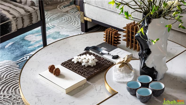 在材料的选择上,设计师始终秉持着自然环保的同时,样板房设计对材料的质感、肌理、形制、色系都精心考究,其中酌量添加金属、玻璃等现代装饰材料,使设计更加拥有艺术气息与格调。