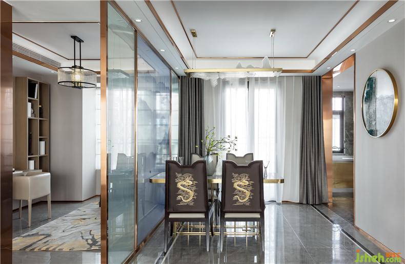 整体风格为新中式。宽敞的空间被分解成若多个功能区域,在原有的格局上重新划分空间。