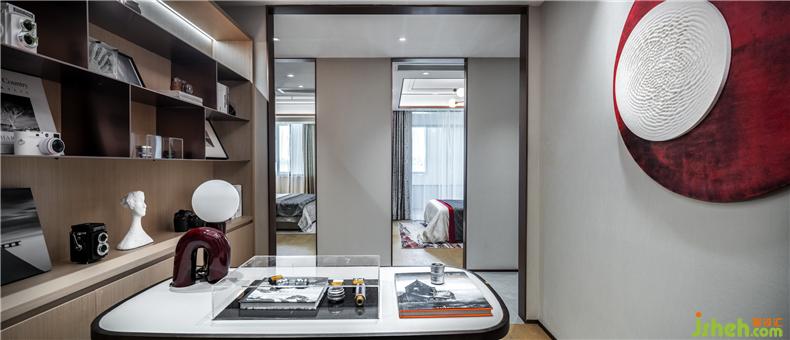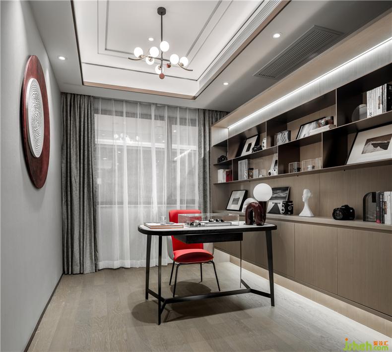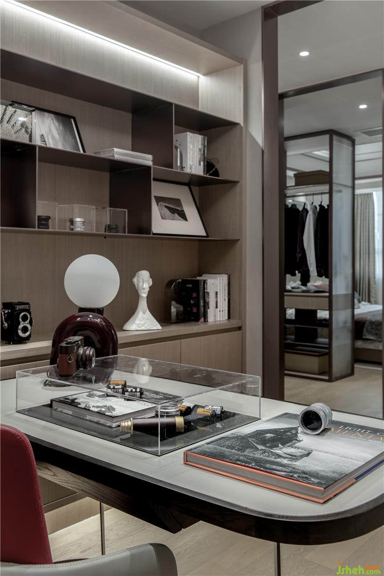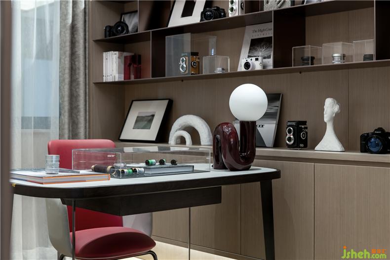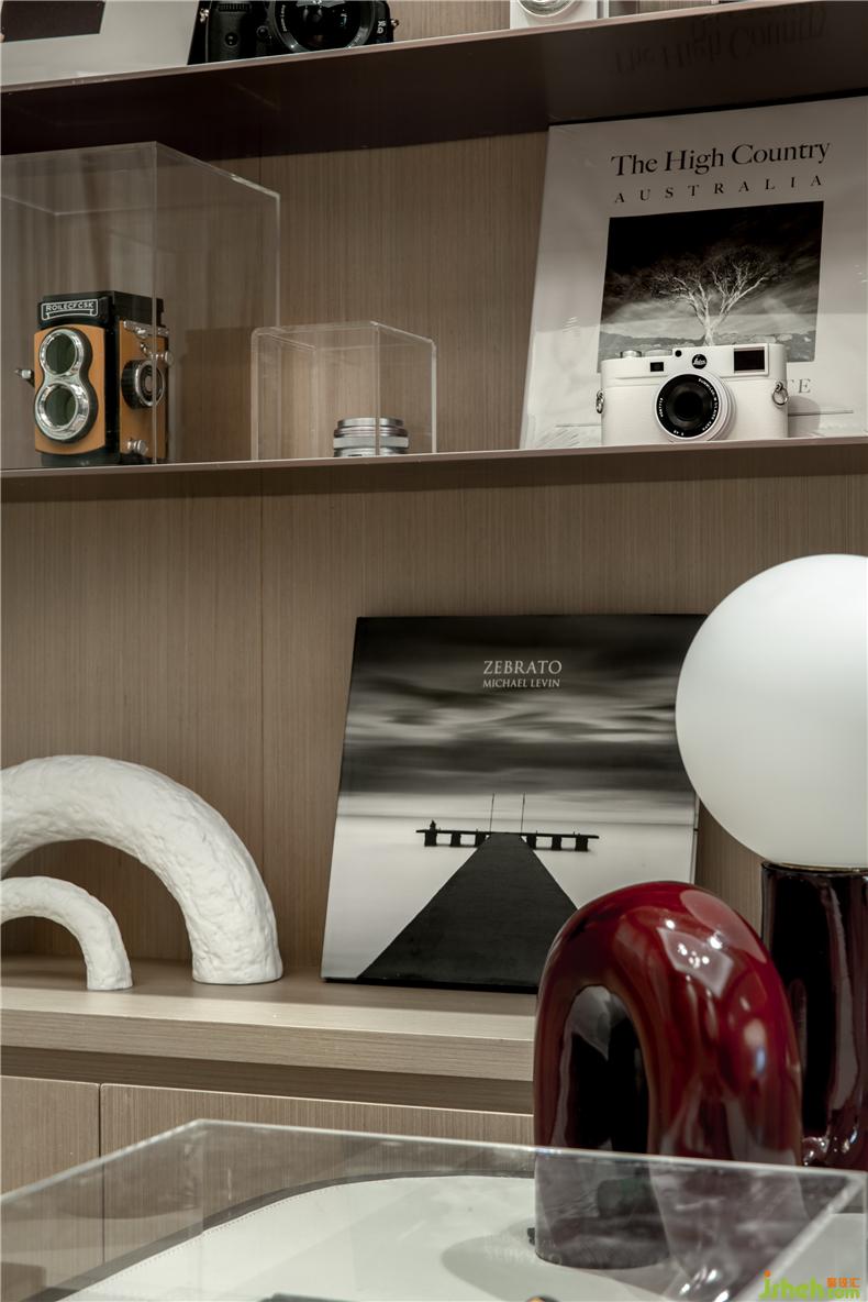 展柜与书桌上的陈列,是主人家生活品味和人生价值。用艺术摆件与极致美的背景装饰挂件,表现出独特的空间美感,满足了居住者对品质的精神追求