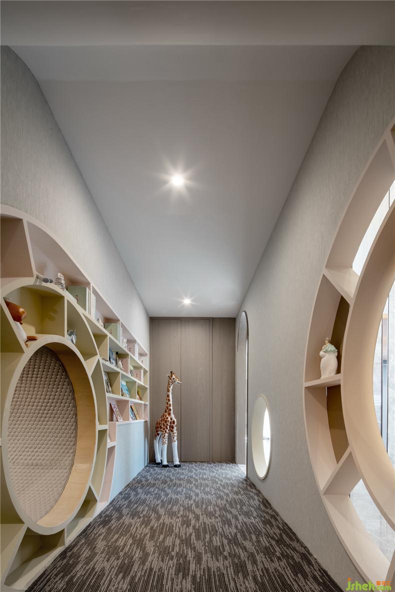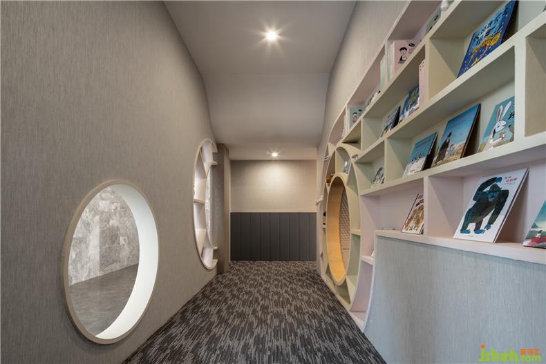 以“梦幻时光”为主题的儿童区,以浅色系为主要点缀色,以圆形为主要形态,通过这条通道便是泡泡区,与主题呼应,充满童趣和回忆,也给孩子们留下了永不幻灭的时刻