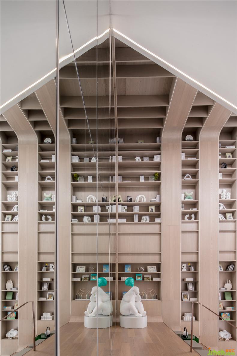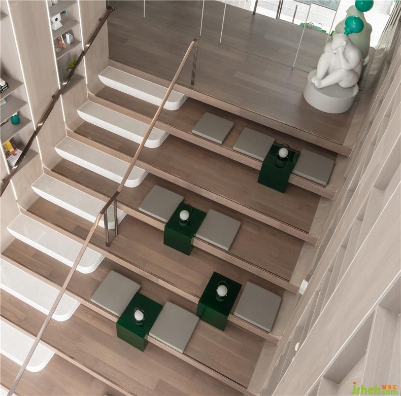 随处可入座的阶梯台阶设计,让畅谈更加随意,人与人之间的距离被拉得更近。通过文化的慰藉,获取精神层面的力量,空间的体块重叠、穿插,或有序地向上延伸,建立无限的维度,将意识形态贯穿于场景中,以连续性的感知联接人与空间的关系。