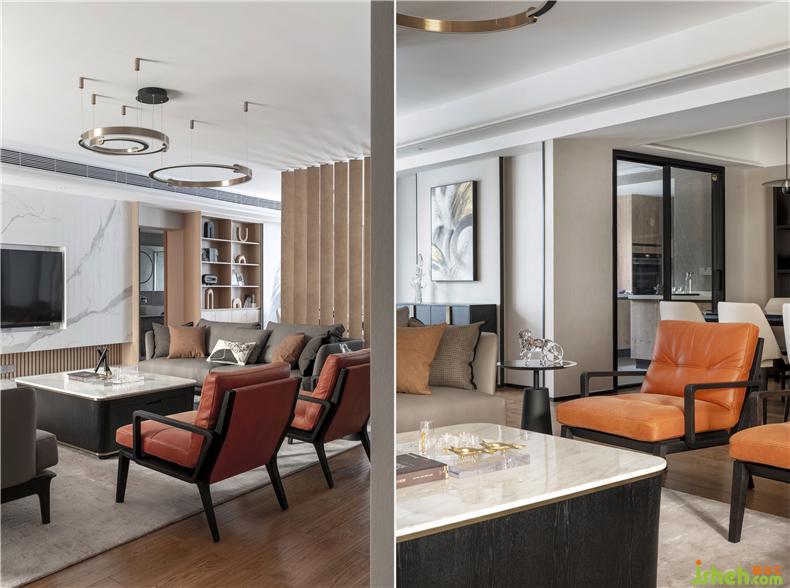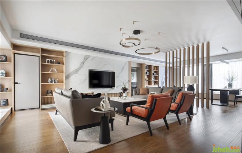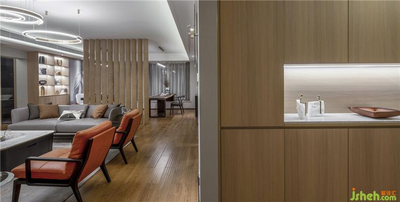 本案的整体风格选择了自然简约的风格表达,私宅定制设计师注重对空间格局的重塑,在设计表达上则用最干净利落的手法,没有多余的装饰,努力呈现生活最简单质朴的状态。色彩上用清爽的高级灰装饰,软装陈设用暖橙点缀,点亮了空间色彩,简洁而不单调。