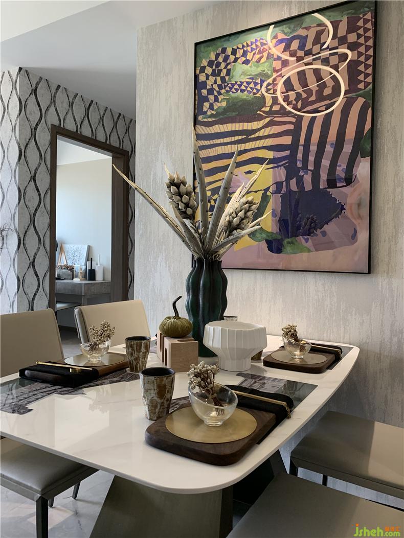 艺术挂画作为空间的点睛之笔,让淡雅的用餐环境多了一种趣味感。