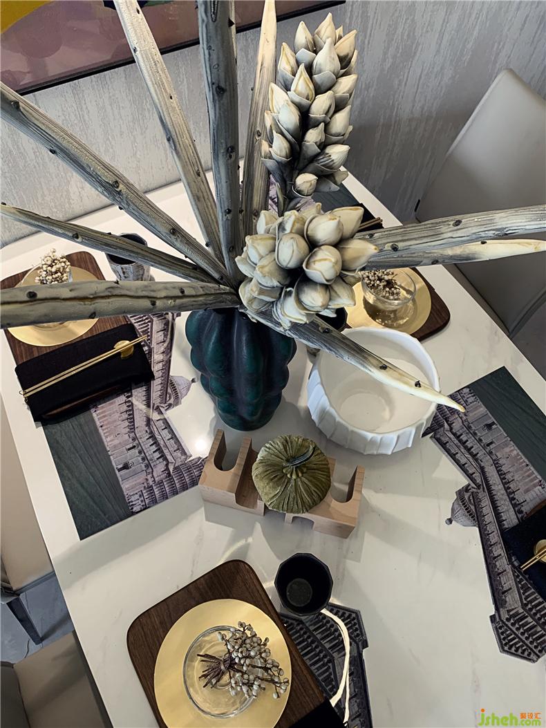 建筑画裁剪的餐垫也非常吸引眼球,在粗矿的张力里感受到艺术,
