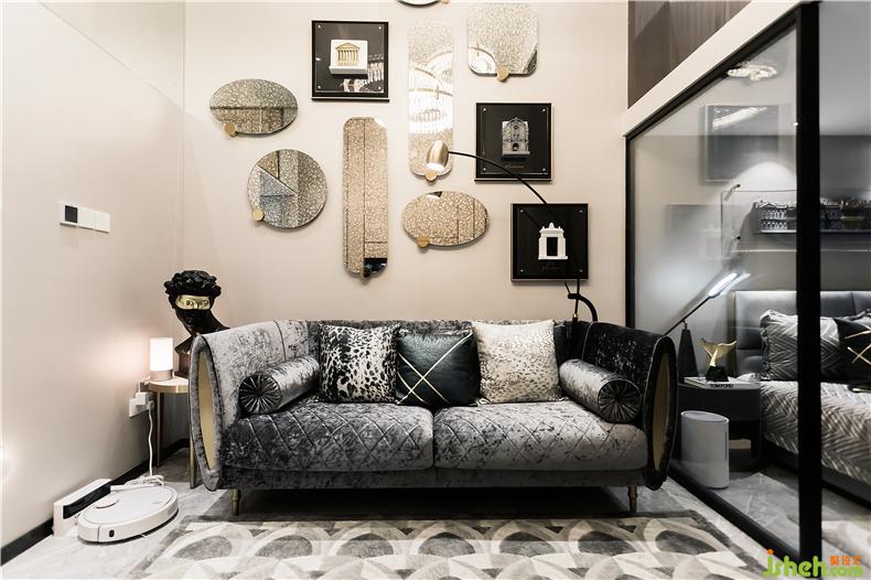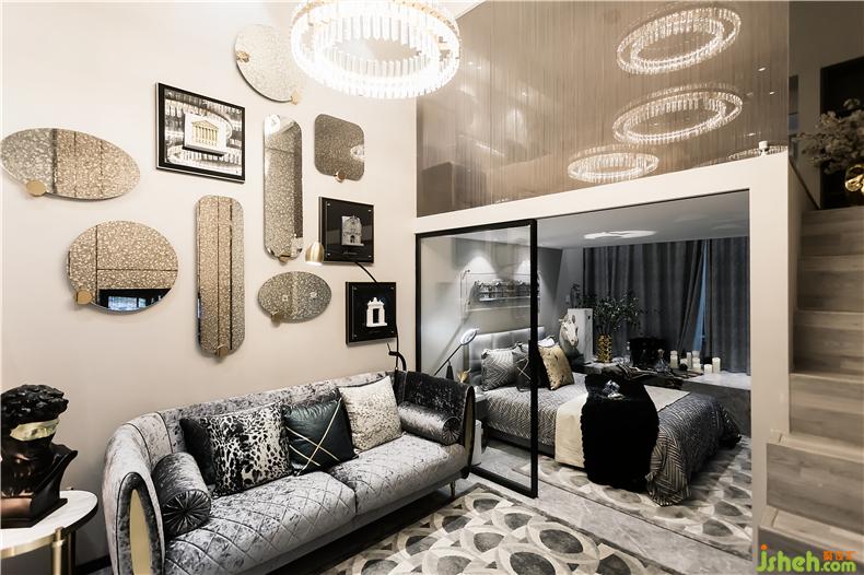 银镜与画框升华了整个空间样板房设计