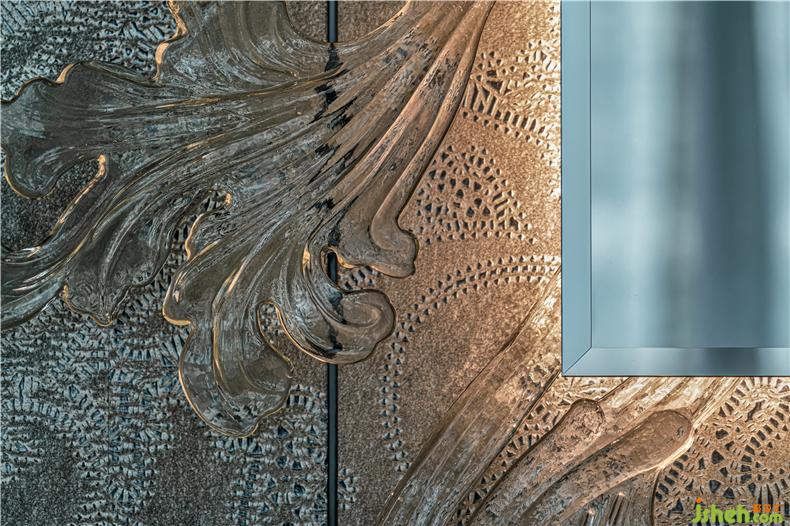 艺术风格的玻璃镜是客厅墙壁的焦点,来自意大利玻璃家具品牌GLAS ITALIA,它将简约与现代的奢华融为一体。在洛可可玻璃雕刻的边缘,手工制作,复杂而精致,展现了意大利玻璃工艺的最高水平,与简单透明的镜子组合,一种独特的艺术时尚存在。LED照明系统也可以用来增强和提高框架。