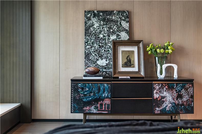 Diesel电视柜与复古绿贯穿的床前柜做工考究,由意大利手工匠人精湛制作,带来独特艺术风格的奢华质感,增添空间的自然古典气息