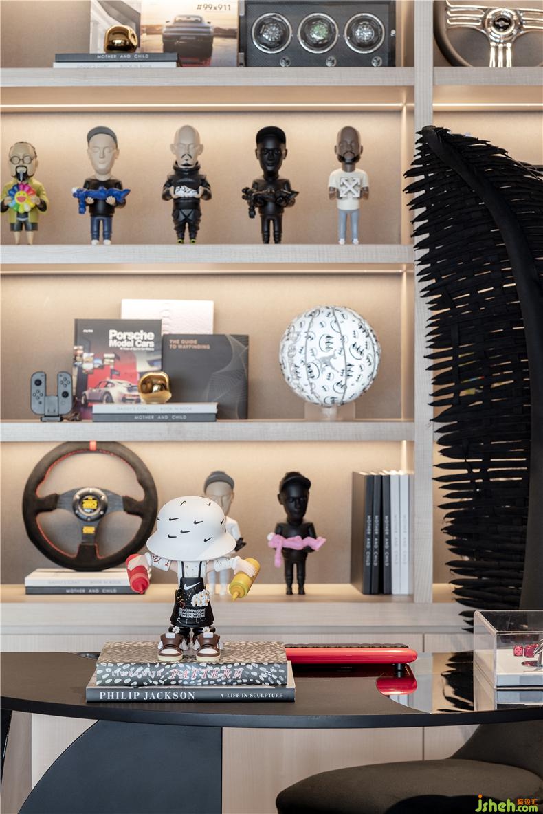 空间兼顾了功能性和艺术性的表述,通过艺术带出项目的「都会」气质及「玩家」个性。样板房设计其中,来自Kenneth Cobonpue的Zaza艺术羽毛椅,精致的叶子被超细纤维包裹着,这是自然界奇思妙想的呈现,不仅提供了柔软而充沛的支撑,还为空间营造了戏剧效果。
