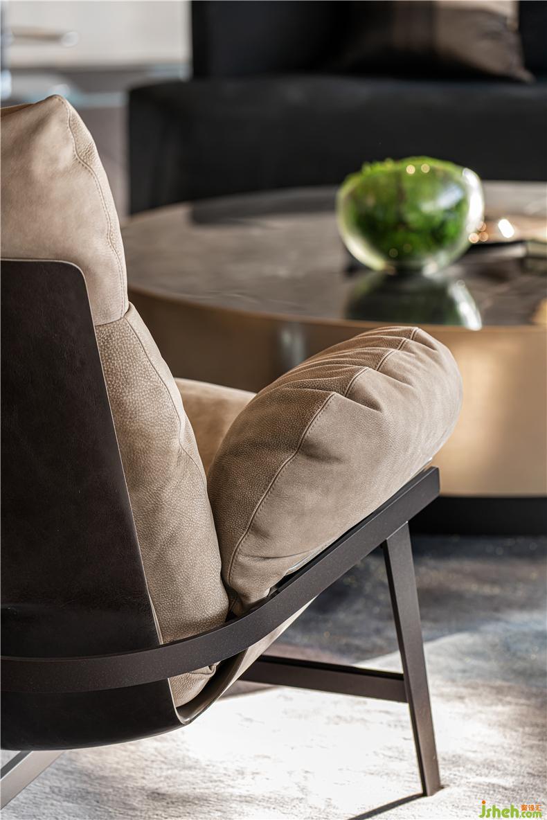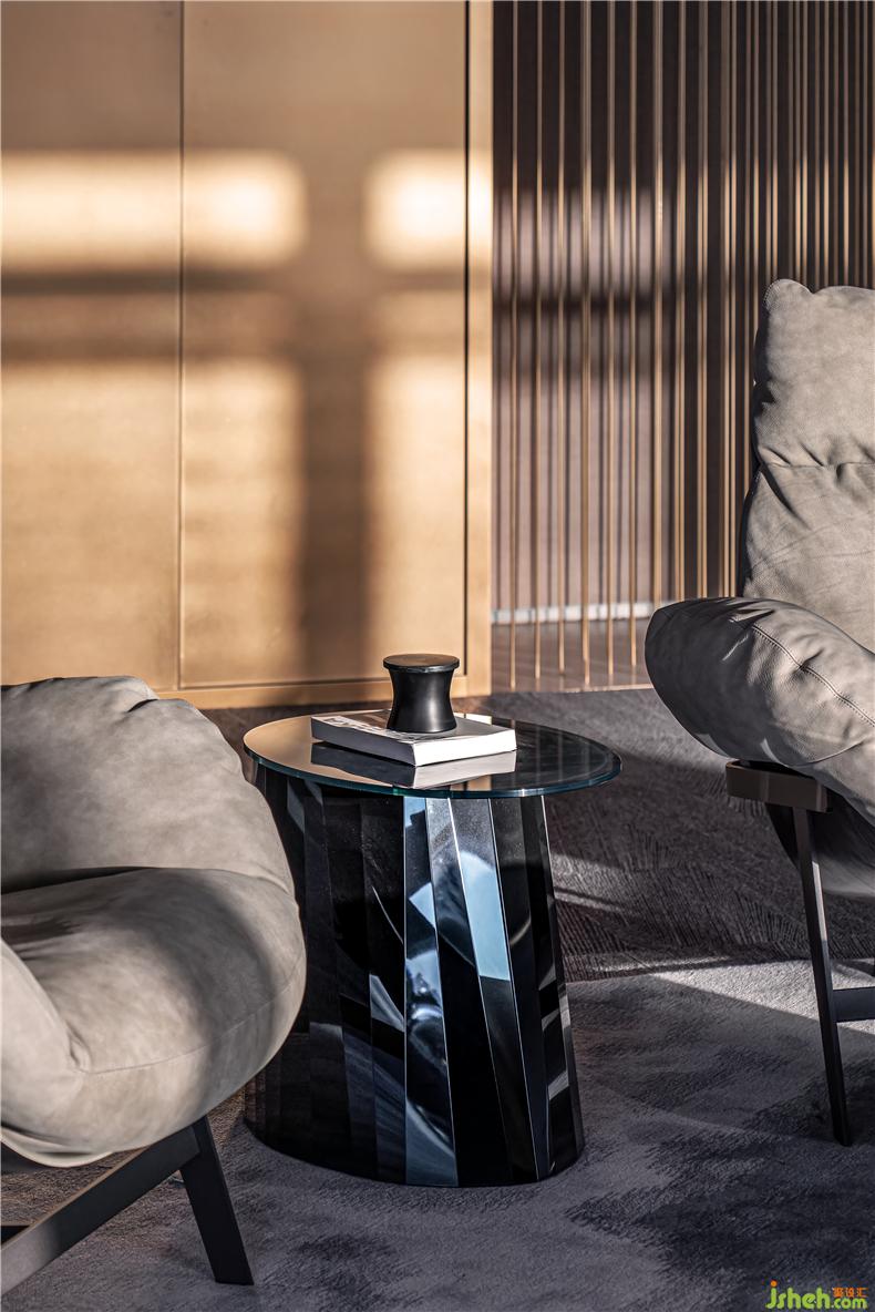 单人沙发组选用了德国品牌Classicon茶几,蓝色棱面金属质地,精致小巧,办公室设计为整个空间带来一抹特别的格调。品牌秉承着将高质量作品推广至全世界,追求隽永价值、原创精神与实用主义。注重形式与功能的平衡感,实用和美感是他们最珍视的,亦是设计师将其选入的原因。