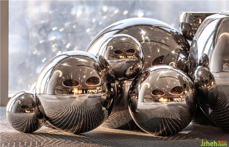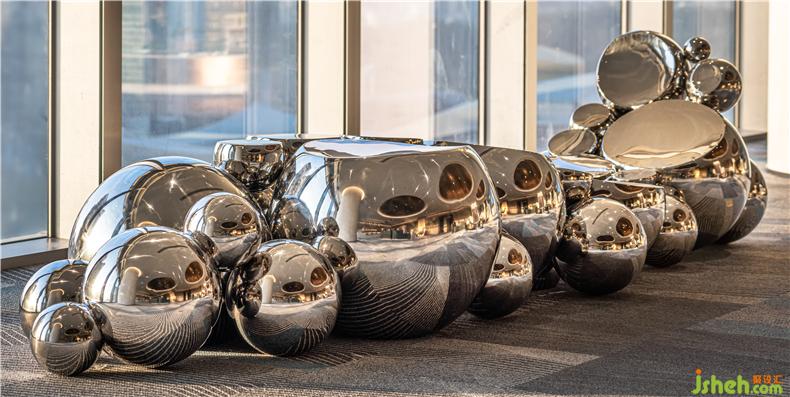 设计师定制打造系列充满艺术感的家具,将功能性的家具,用艺术装置的方式将其打造出来,呈现“从生活里长出来的艺术气质”。四件艺术装置分布在不同的空间区域,形成在视觉上的延续,又呈现不同的艺术表现形态。 艺术设计灵感汲取自然界中的形态作为元素,如水滴的形态、