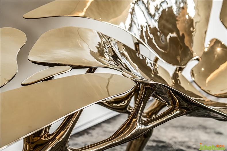 一根链接的金属,如树干和枝蔓一般,经过人工手工锤弯,塑形,抛光,打磨,每一寸肌理都由匠人精铸而成,雕塑的桌脚形态如同起伏永不停歇的植物脉络,展现源源不断的能量。与华丽光洁的金属质地更好的呈现了艺术的气质,带来时尚艺术的先锋格调。最好的办公室设计,总是缘自理想主义的初衷。
