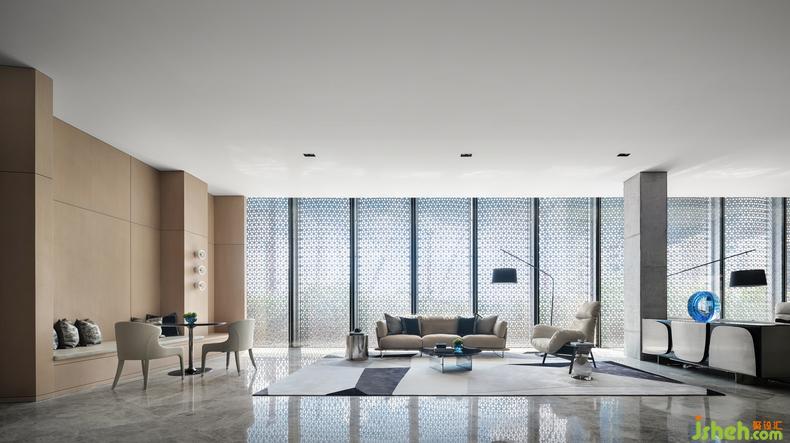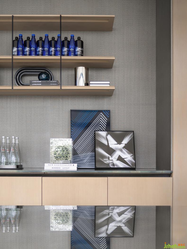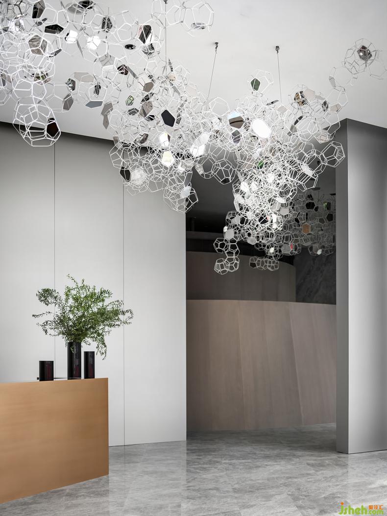 空间构成,更多的是对艺术、美学和生活的深度诠释。自然光影结合空间几何,线条与材质搭配折射出现代艺术之感。空间入口处的视觉焦点,代表着企业形象。注重材质的搭配以及空间体现,品质感十足。