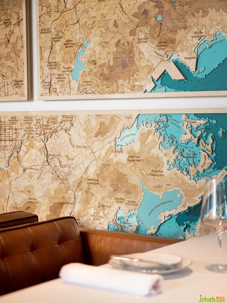 酒店软装设计以制作木制地图来说明海参崴的深度