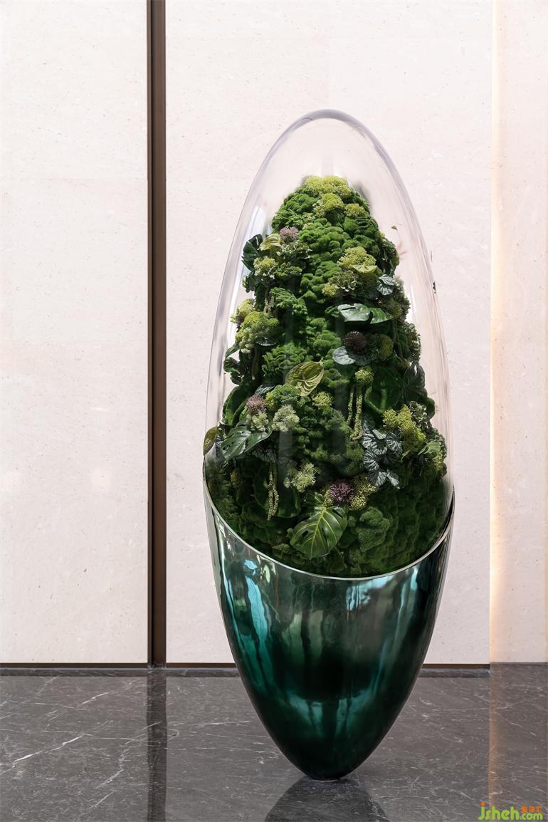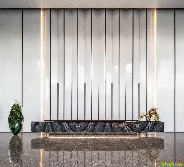 接待台基底规整的大理石具有沉稳理性的气质格调,以一颗结合了当代科技的种子作为穿越时间的容器,造中粮·大悦城的理想之国。